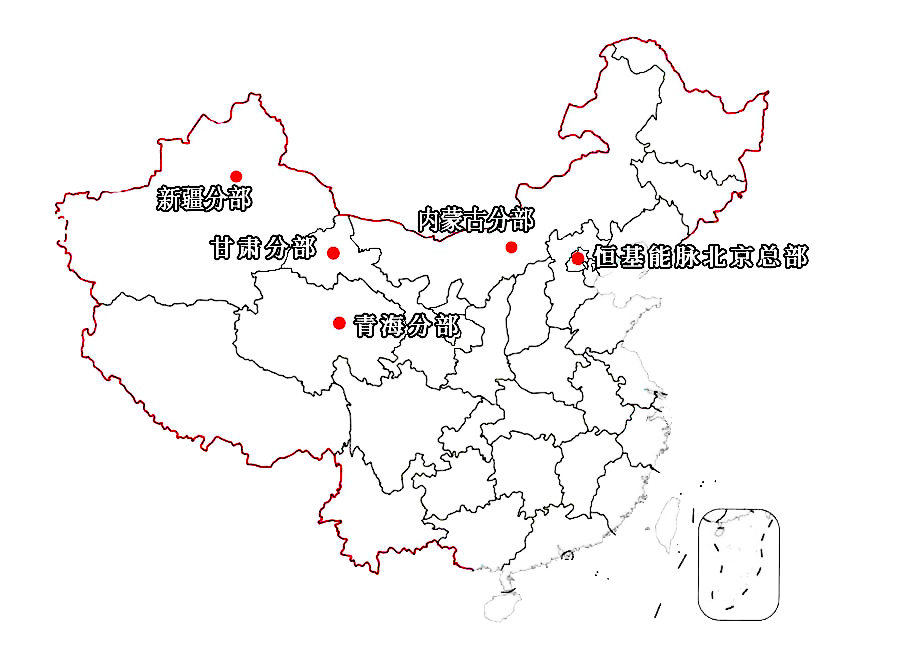 恒基能脉总部位于北京,在北京设有实验基地和样机生产基地,同时在甘肃、青海、新疆、内蒙古等地设立了分公司或代表处,已在全国逐步形成多形式、多区域、多领域的产业化布局。公司与多家科研院所和多家金融机构开展深度合作,为市场拓展、项目开发、投资、建设和运维提供有力支持。